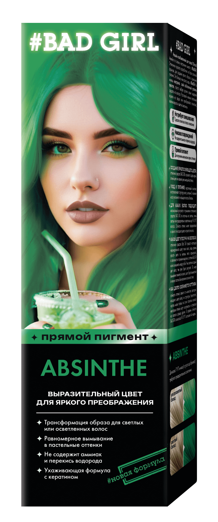 BAD GIRL Absinthe – для тех, кто обожает эксперименты. Этот невероятный оттенок, как и ты, требует к себе особенного внимания и обладает сногсшибательным эффектом. Причем, в буквальном смысле: устоять или пройти мимо абсолютно невозможно!