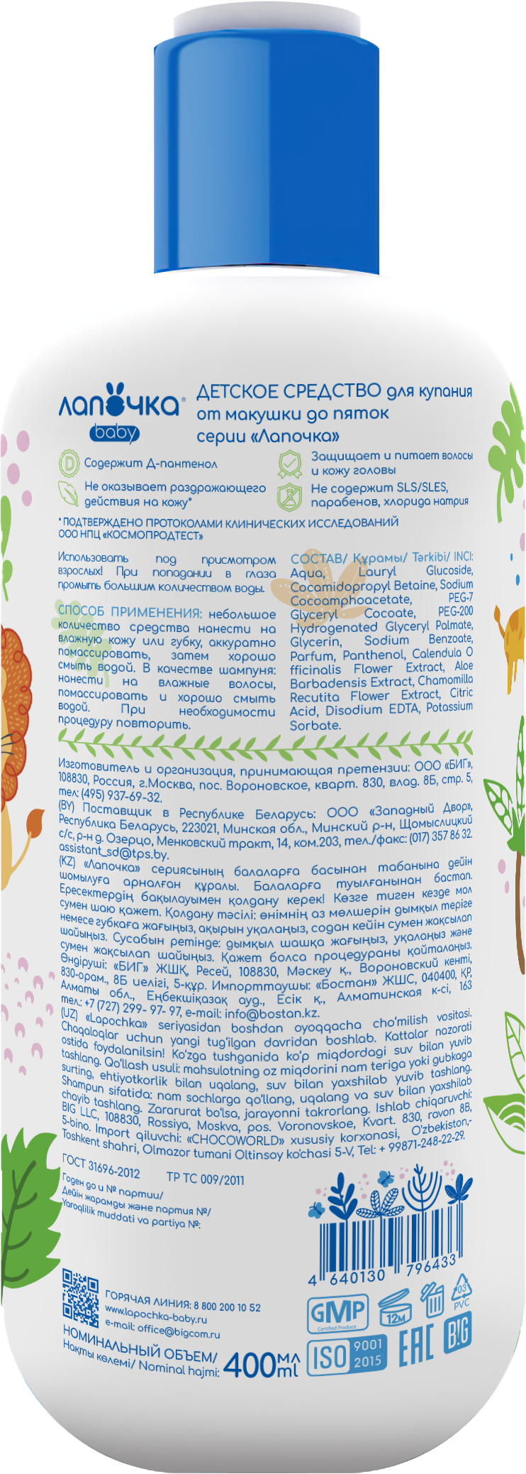 Детское средство для купания Лапочка предназначено для купания детей с рождения. Не раздражает глаза, не содержит мыла.