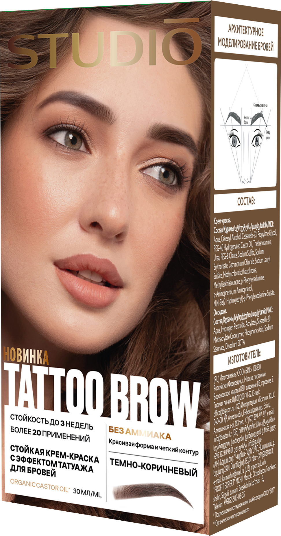 ТЁМНО-КОРИЧНЕВАЯУникальное свойство крем-краски позволяет окрашивать верхние слои кожи зоны роста бровей, обеспечивая несмываемый эффект татуажа.
