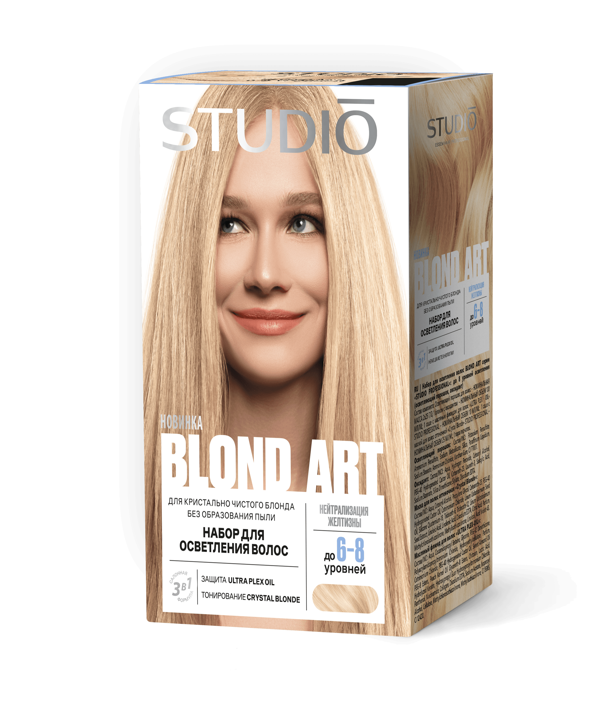 1. Профессиональный осветляющий порошок равномерно распределяется по всей поверхности волос, обеспечивая качественное осветление до 8 уровней.