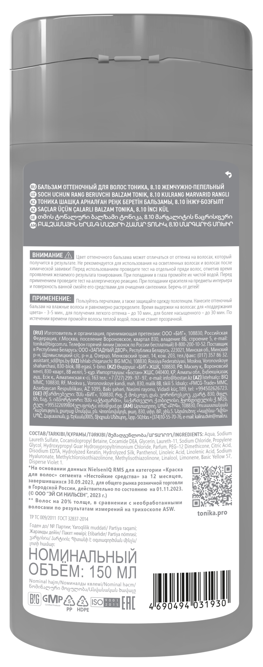 8.10 Жемчужно-пепельныйБренд №1 в категории оттеночные средства *