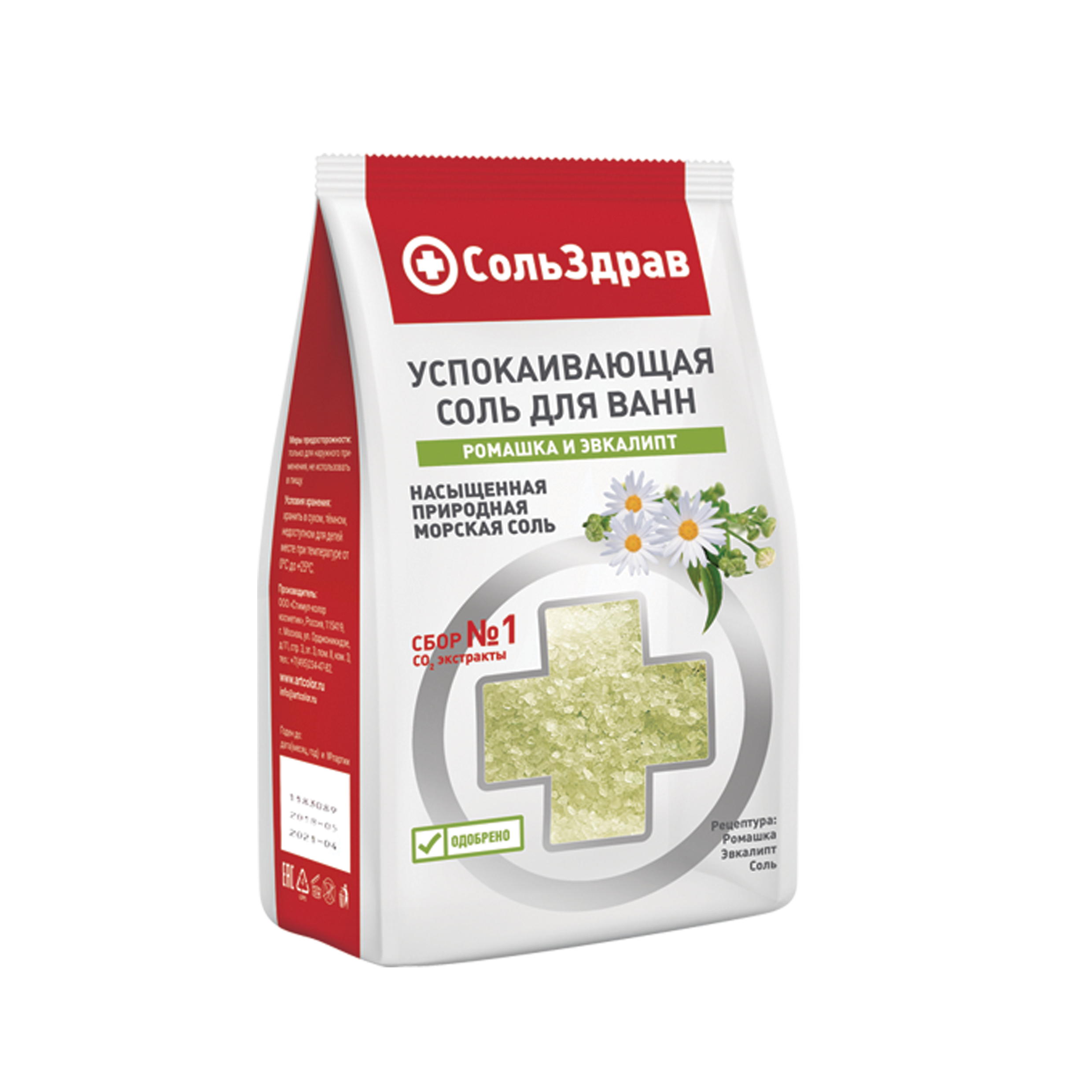 Мы сохранили всю пользу природной морской соли для Вашего здоровья, обогатив ее рецептуру активными СО2 экстрактами Ромашки и Эвкалипта: