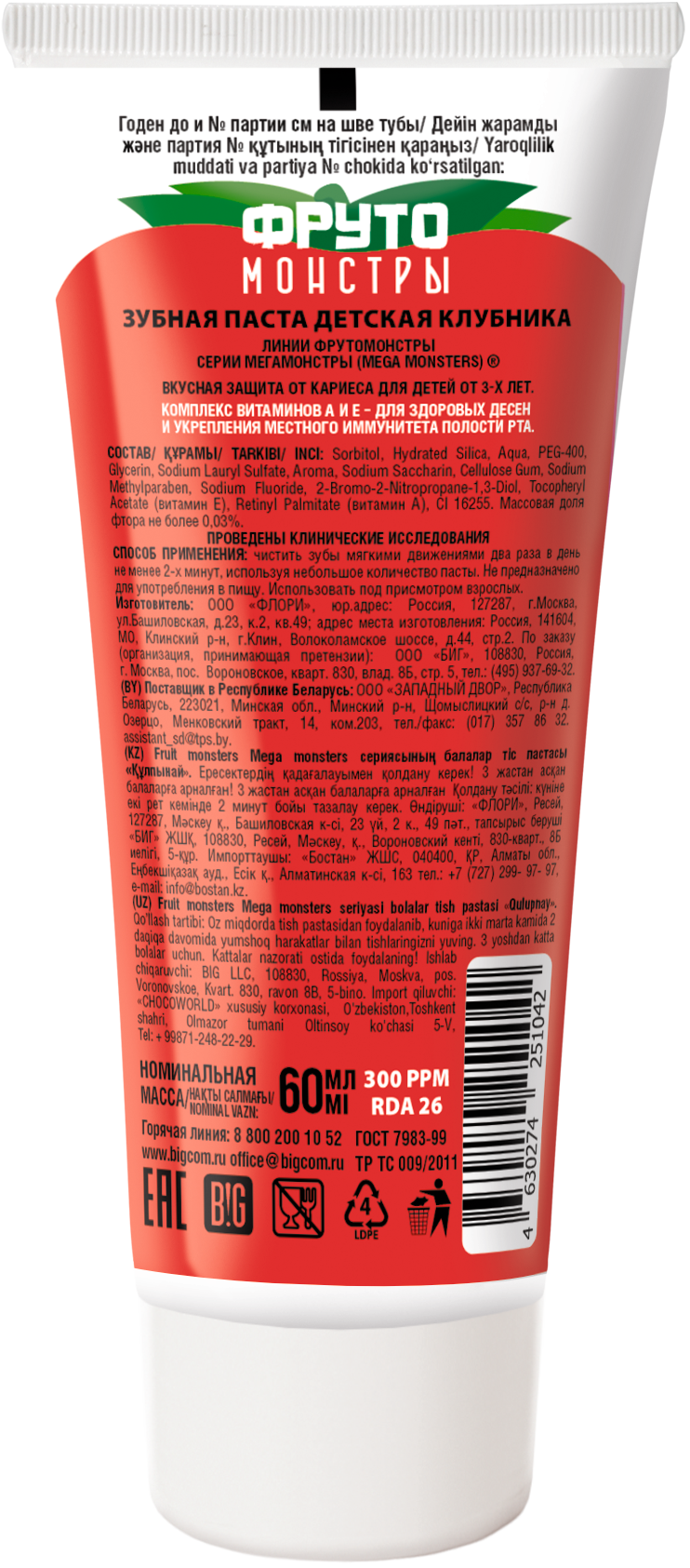 Содержание фтора 300ppm, низкая абразивность 26 RDA.