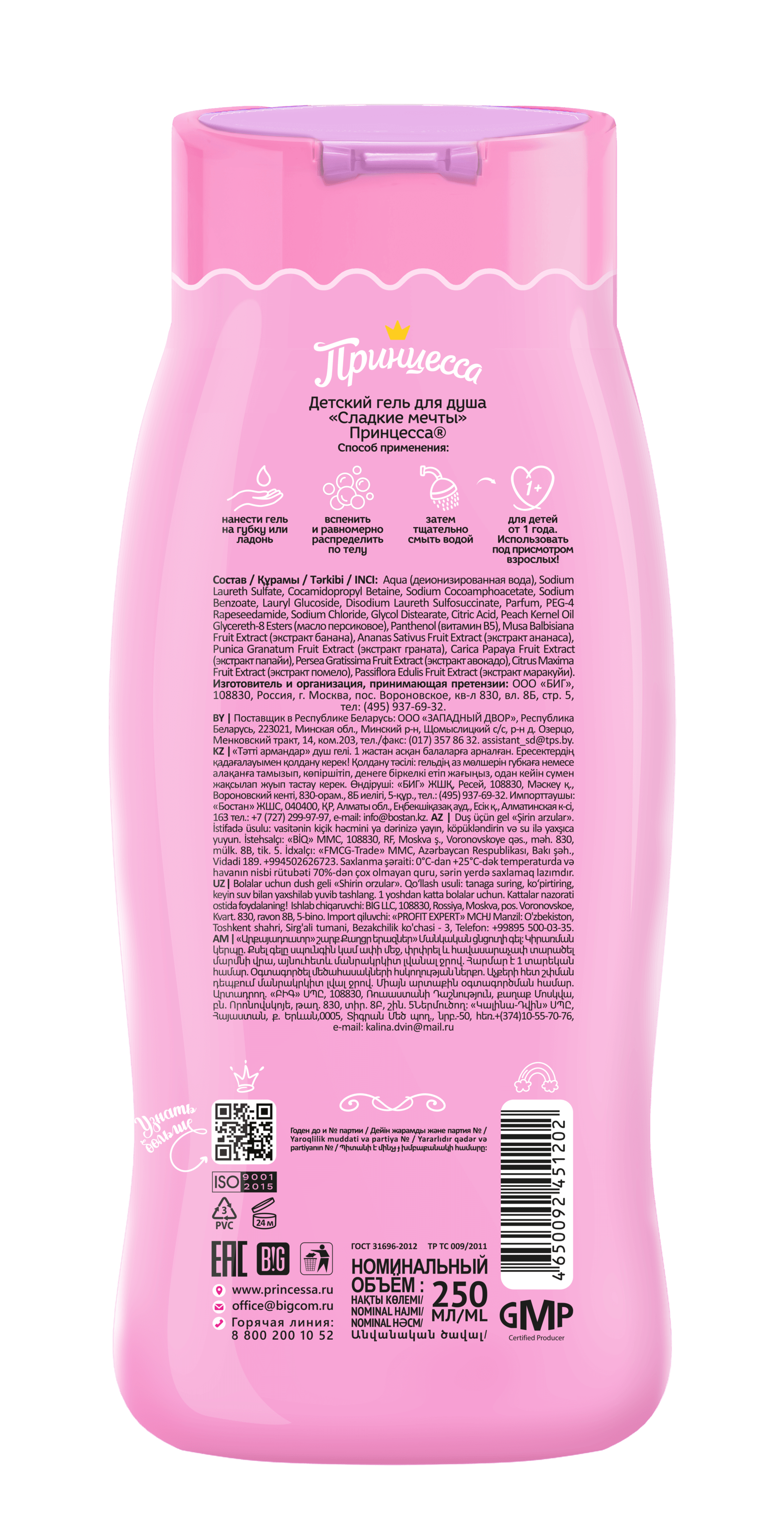 Это просто банановый рай! Теплый, солнечный и волшебный! Нежный гель для душа - просто незаменимое средство для бережного ухода и мягкого очищения детской кожи. Гель для душа «Сладкие мечты» делает кожу гладкой и бархатистой, а теплый банановый аромат дарит настоящее наслаждение. Насыщенность натуральными компонентами обеспечивает мягкое очищение и особый уход. Состав геля адаптирован для детской кожи и богат натуральными экстрактами и активными компонентами.