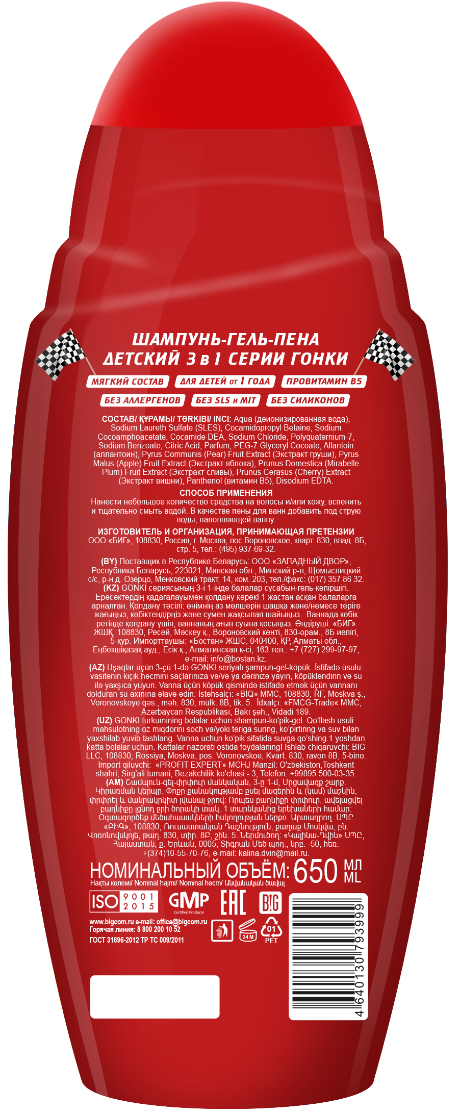 3 в 1, шампунь-гель-пенаНовая серия Гонки для всех мальчишек - веселых и стремительных любителей скорости и состязаний!