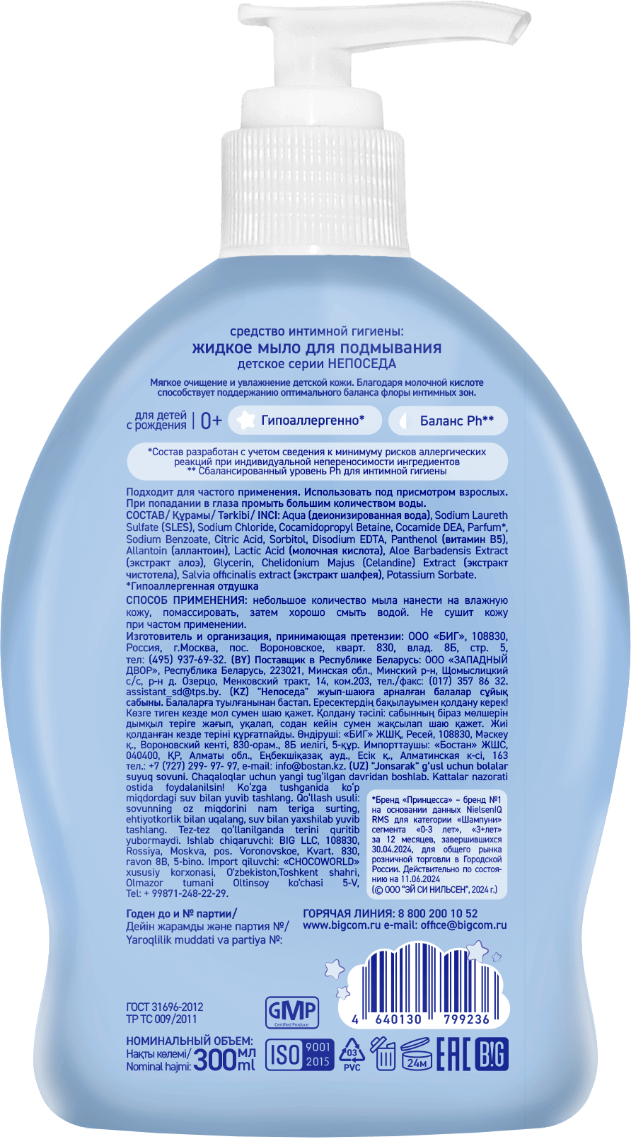 Жидкое мыло с алоэ и аллантоином Непоседа создано специально для ухода за нежной кожей новорожденных.