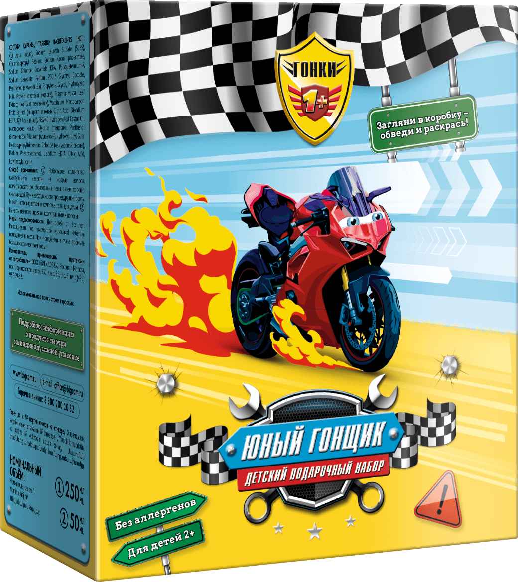 Мягкая формула универсального средства 2в1 и настоящий аромат победы душистого детского спрея обеспечат любителю гонок прекрасное настроение!