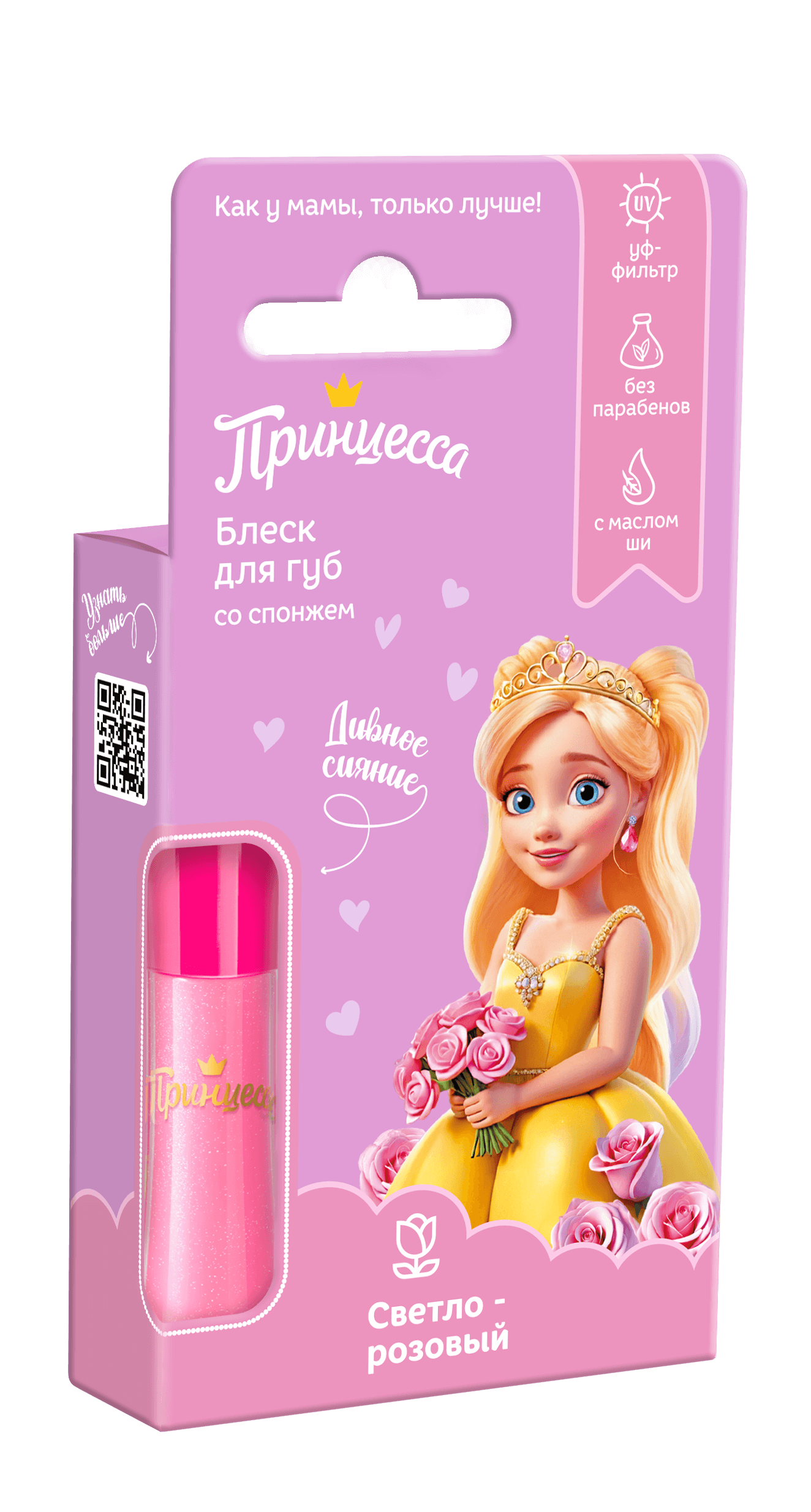Нежная текстура, модные оттенки – как у мамы, только лучше! Блеск для губ придает нежный розовый оттенок и дарит полноценный уход нежной коже губ, защищает и увлажняет ее. Он создан специально для маленьких красавиц, поэтому не содержит парабены и обогащен комплексом из масла макадамии и витамина Е.