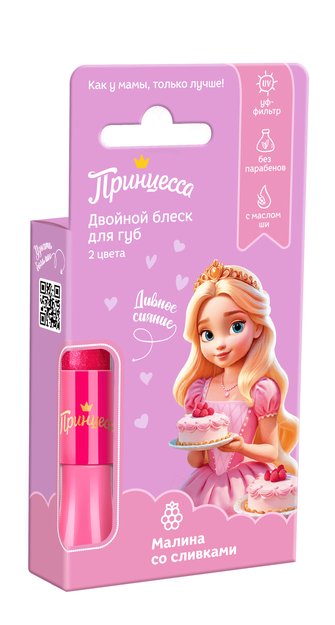 Нежная текстура, модные оттенки – как у мамы, только лучше! Необычный чудесный флакончик не оставит равнодушной ни одну модницу. Один флакон - два настроения! Нежный малиновый оттенок или яркое малиновое мерцание - выбирай сама! Блеск создан специально для маленьких красавиц, поэтому не содержит парабены и обогащен комплексом из масла макадамии и витамина Е, что обеспечивает полноценный уход за нежной кожей губ, защищает и увлажняет ее.