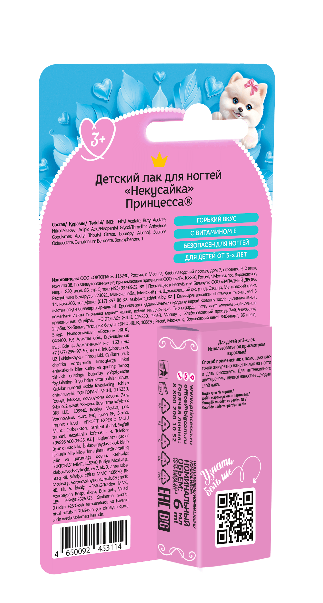 Детский горький лак для ногтей «Не кусай-ка ноготочки» от Принцессы – самое лучшее решение! Бесцветный лак от обгрызания ногтей легко наносится, быстро сохнет и делает нежные ноготки совсем невкусными. Ни один ребенок не захочет снова попробовать такие горькие пальчики на вкус. Маленькая хитрость – лак от вредной привычки можно наносить поверх любого другого любимого лака. Небьющийся стеклянный флакон оснащен удобной узкой и ровной кисточкой, состав средства от грызения ногтей абсолютно безопасен.