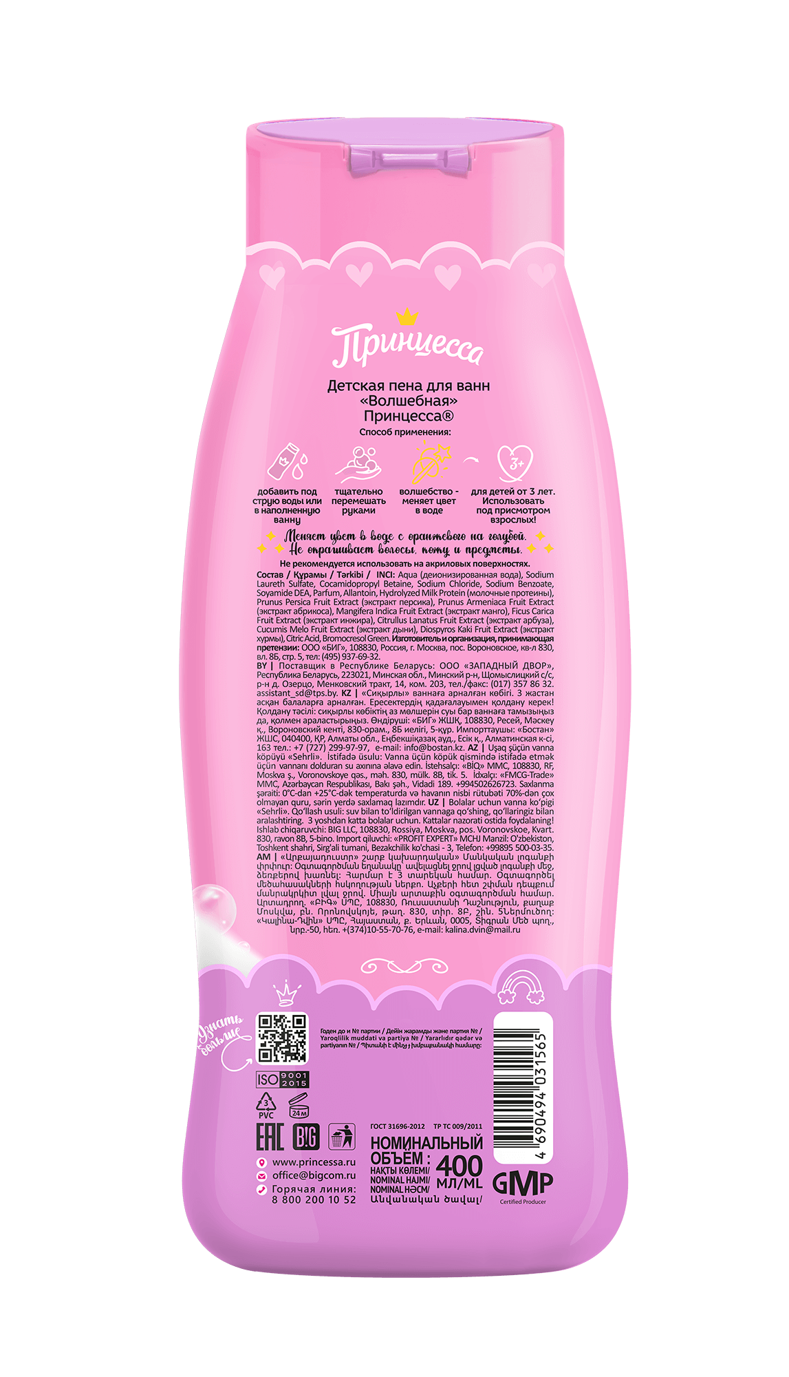 Пена для ванны «Волшебная» - это настоящее волшебство! Удивительное превращение! Волшебная жидкость, смешиваясь с водой чудесным образом меняет цвет с теплого оранжевого на насыщенный голубой. А пенка при этом остается белоснежной! Теперь купание – это еще и увлекательное путешествие в мир магии и чудес! Состав пены адаптирован для детской кожи и богат натуральными экстрактами и активными компонентами, благодаря чему кожа Принцессы получает особый уход и защиту.