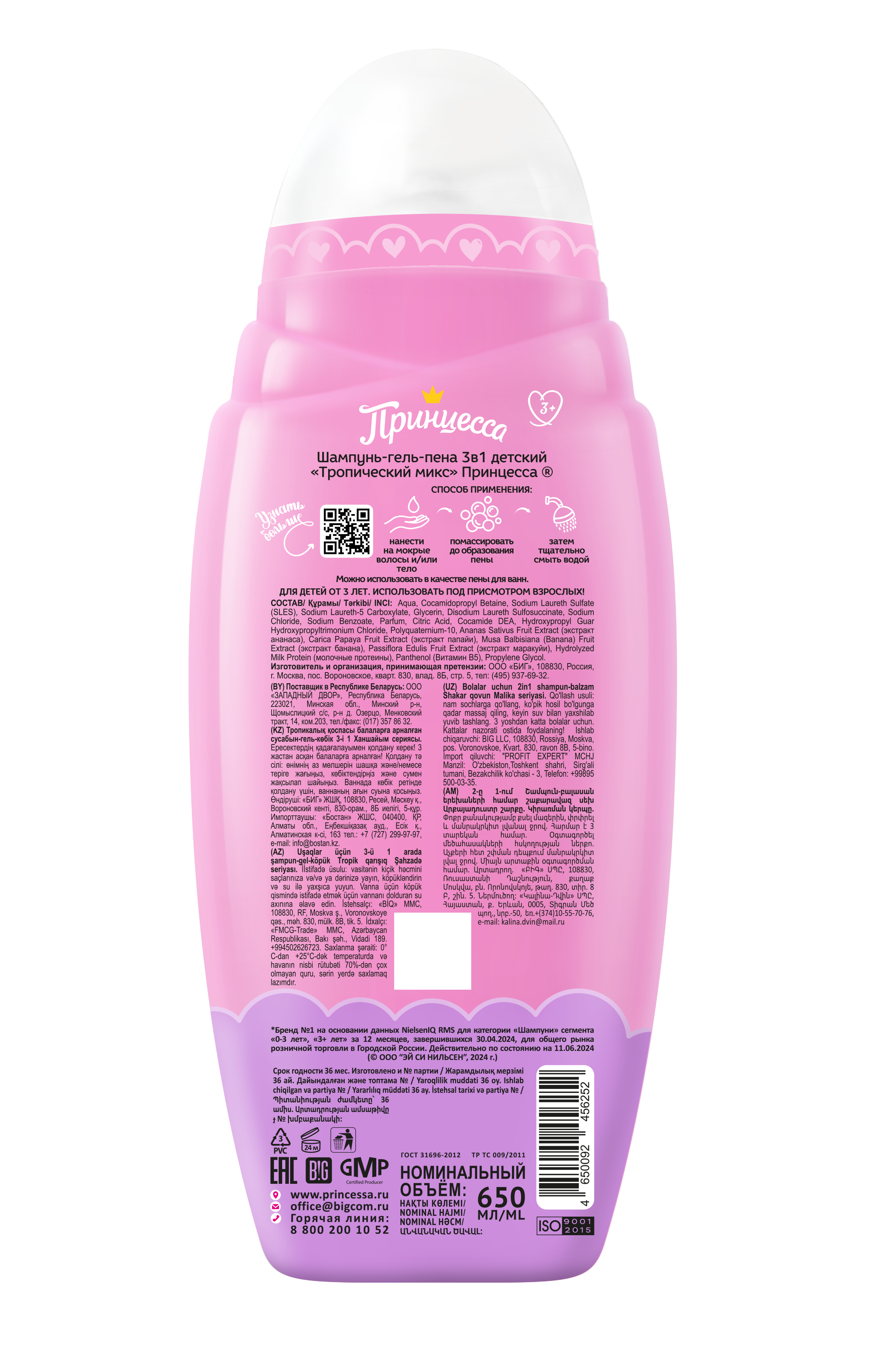 Серия Принцесса «Выгодный объем 650мл» - это отличные средства с экстрактами ягод и фруктов, с провитамином В5 и молочными протеинами для мытья волос и веселого купания озорной Принцессы! Сочные фруктовые ароматы – дыньки, яблочка и тропических фруктов подарят прекрасное настроение на целый день!