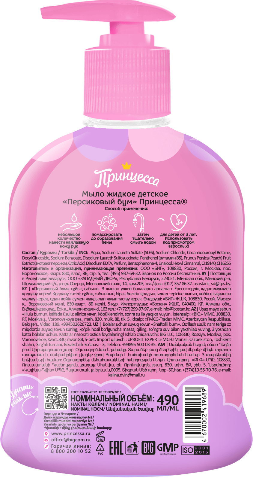 Настоящая леди ежедневно следит за чистотой и гигиеной. В этом поможет жидкое мыло с удобным дозатором в устойчивом флаконе! Нежный аромат персика раз за разом поднимает настроение Принцессе, нежный состав мыла обеспечивает чистоту и уход ее маленьким ручкам.