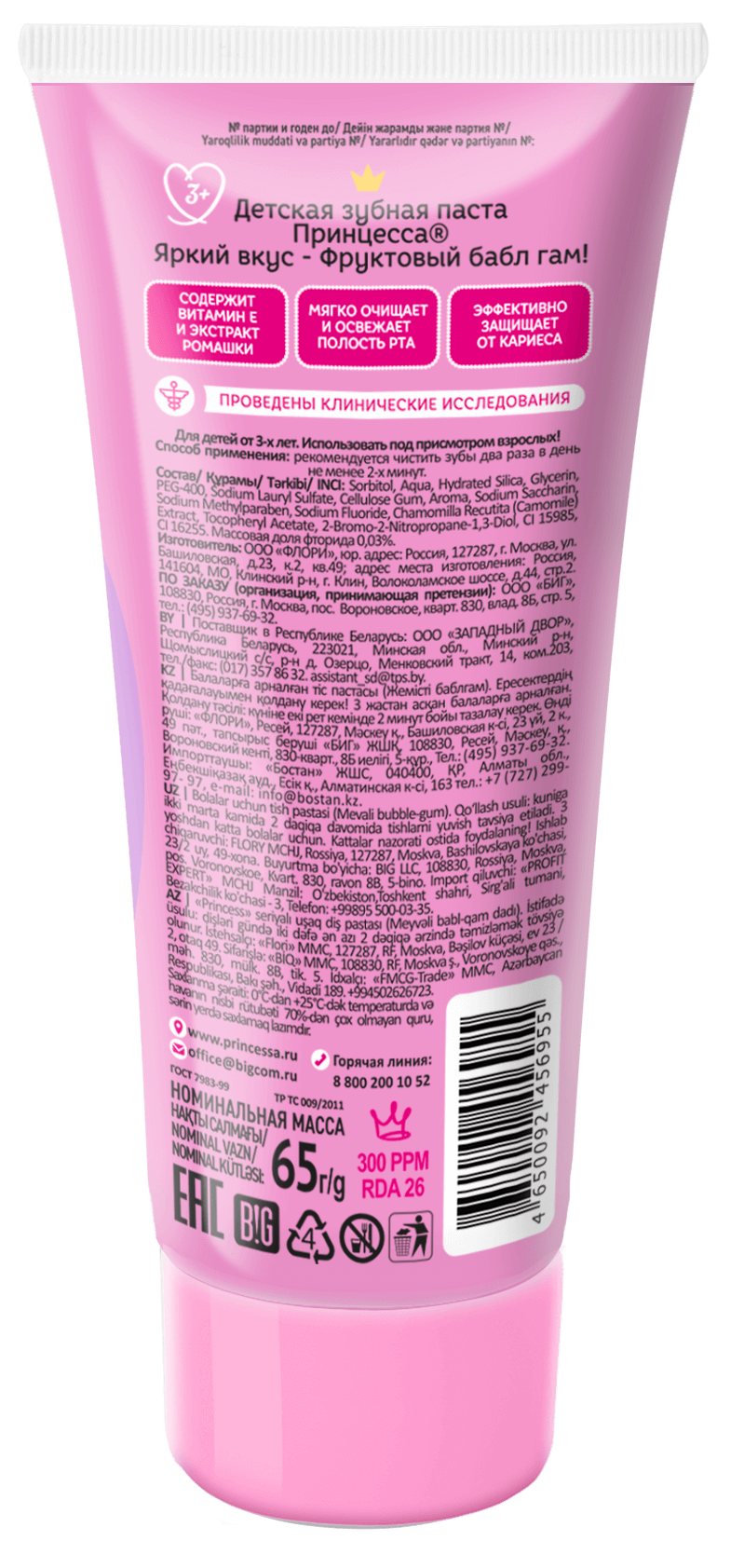 Красивая улыбка и здоровые зубки - вот настоящее украшение каждой Принцессы. Зубные пасты для детей эффективно очищают зубы от налета, обеспечивая надлежащую профилактику кариеса и имеют пониженную абразивность, что гарантирует деликатный уход за эмалью молочных и коренных зубов.