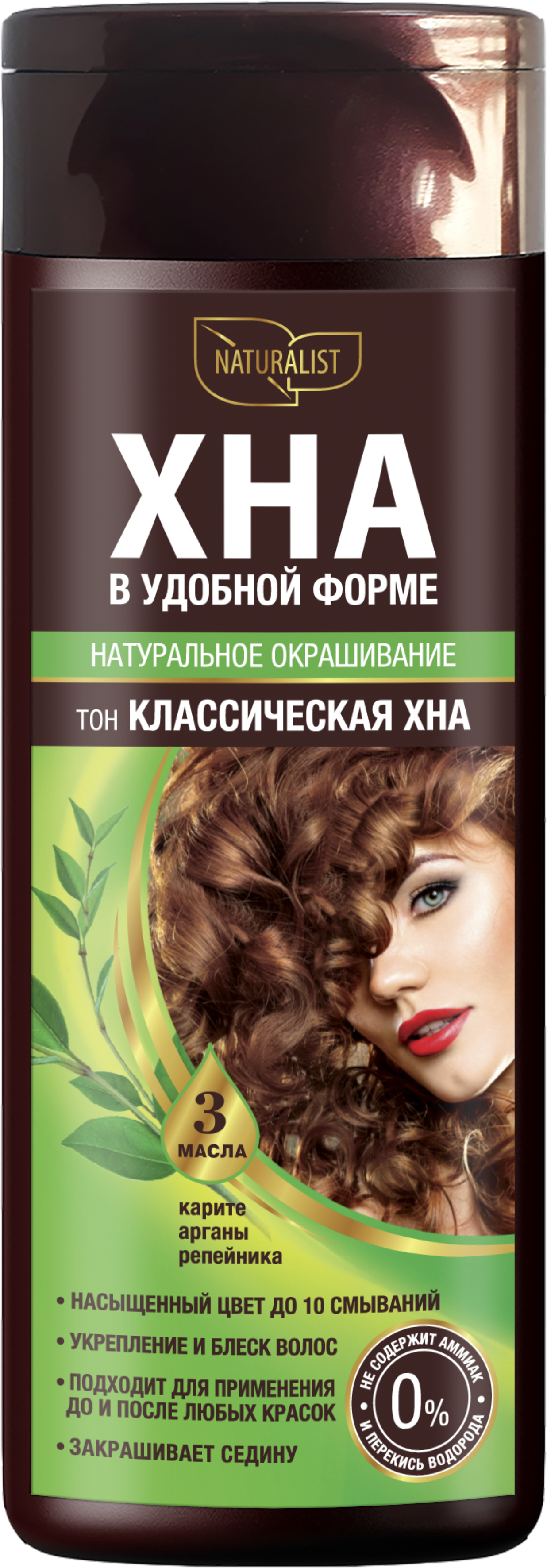 ХНА В УДОБНОЙ ФОРМЕ – современный окрашивающий продукт, дарит волосам сочный красивый оттенок, как хна, и непревзойденный натуральный уход благодаря содержанию ценных натуральных масел и экстракта шёлка. Ваши волосы становятся более плотными, объемными, гладкими и сияющими. Важным достоинством продукта является то, что его можно использовать в перерывах между окрашиваниями стойкой окислительной краской для усиления яркости оттенка и скрытия отрастающих корней.