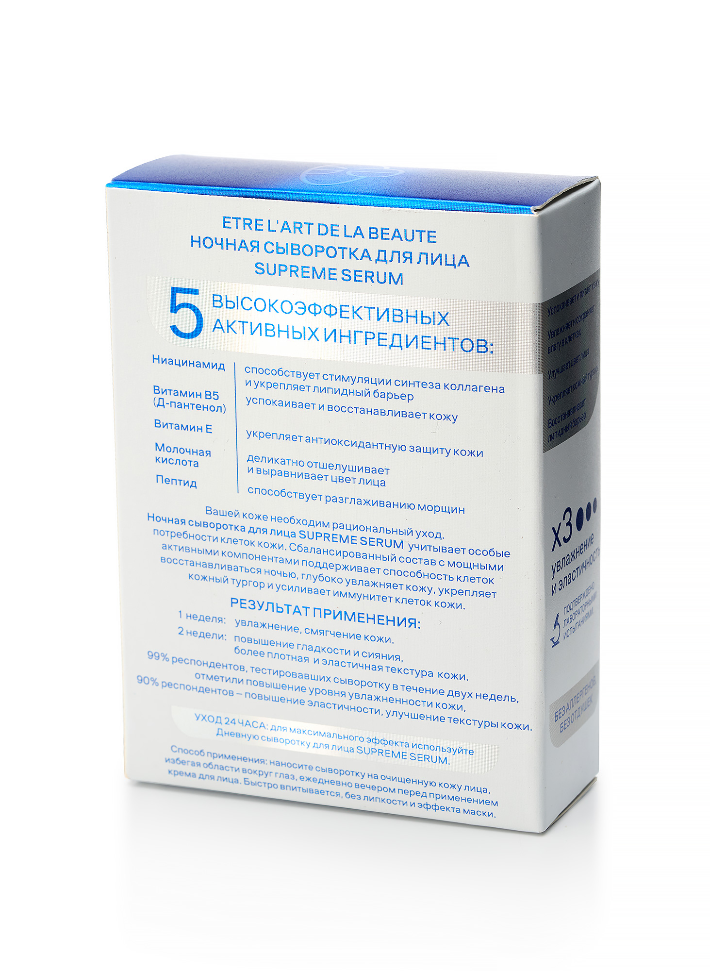 Формула с пятью активными компонентами укрепляет кожный тургор, восстанавливает липидный барьер, осветляет, интенсивно увлажняет и успокаивает кожу
